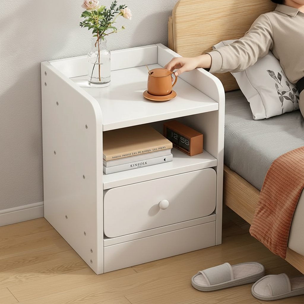 Upgrade your bedroom with this modern white bedside table, designed to combine minimalist style, everyday stability and smart storage. Made from 11 mm thick MDF wood, it blends seamlessly into contemporary interiors while offering excellent durability.
